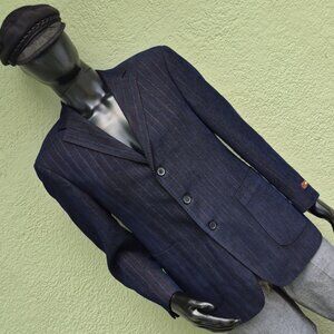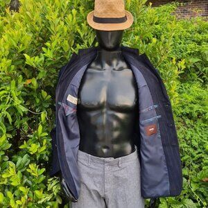 This blue sport coat boasts a sophisticated design, featuring notched lapels and a structured shoulder line, which offers a polished look for any occasion. The fabric's subtle texture adds depth and elegance, making it a versatile addition to your wardrobe