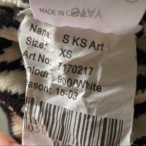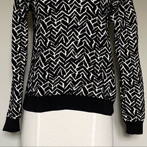 STAY Scandinavian Esthetics graphic black and white chevron patterned sweater, size XS.