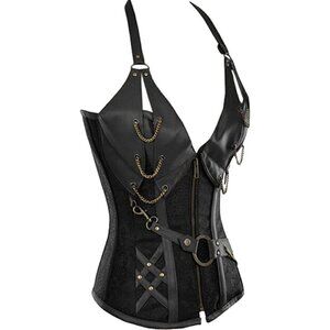 NWT Steampunk Corset Top Steel Boned Underbust Renaissance Black Leather Cosplay NWT Sexy Zipper Front Bondage Cosplay Costume