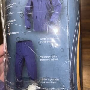 STEARNS ADULT 2 PIECE RAINSUIT MED/LARGE DUAL SIZE BLUE RAIN JACKET & PANTS