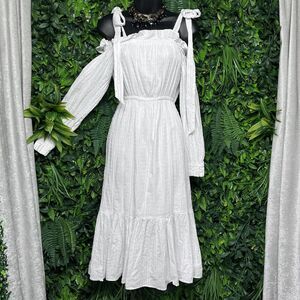 STEELE Dress Women Small White Cold Shoulder Ruffle Midi Cottage 2472