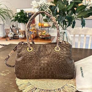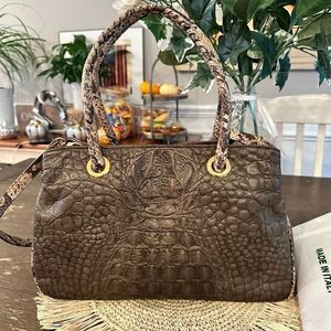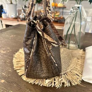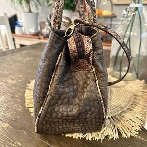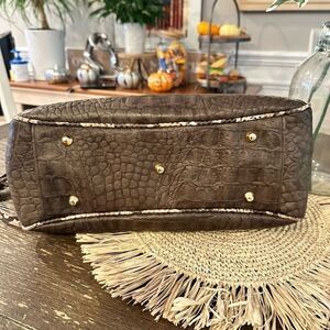STEFANO BRAVO Made in Italy Brown Croc Embossed Leather Hand Crossbody Bag New