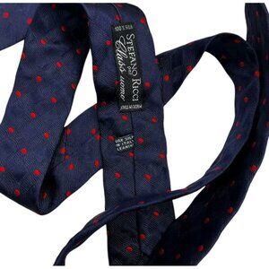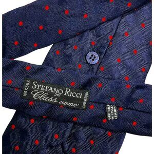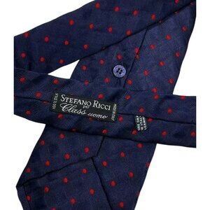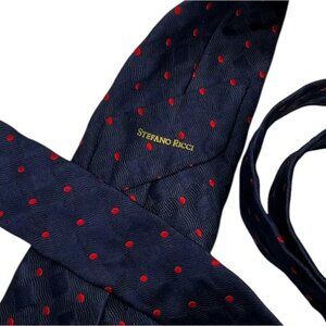 STEFANO RICCI Men's Silk Necktie LUXURY Navy Red Geometric Polka Dot W:3.8" EUC