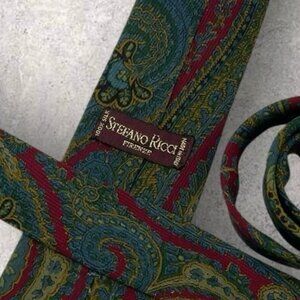STEFANO RICCI VINTAGE Silk Tie ITALY Gray Green Paisley W:3.1" EUC