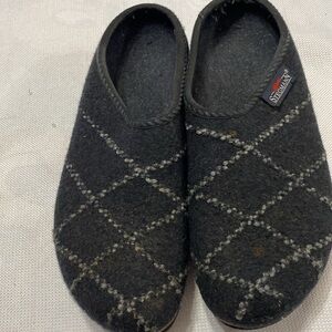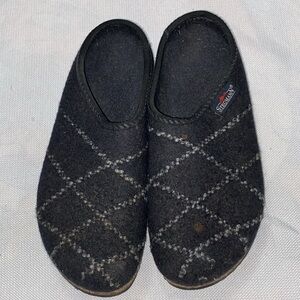 STEGMANN Wo Size 9 (measures 11” )Black and Gray WOOL Slip-On CLOG/Slippers
