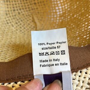 Super cute cat. Made in Italy! No odors rips tears. Excellent condition. Minor spot on back of hat as shown. Foldable for travel. No stains inside rib. Made in smaller size.