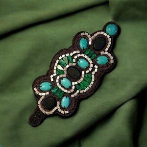 STELLA & DOT Cortez Cuff Turquoise, Green Glass, Brown Leather One Size (EUC)