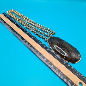 *Description: The STELLA & DOT Leona Necklace features a Labradorite stone pendant in an oval shape, set in yellow gold plated metal. The pendant hangs elegantly from a 30-inch chain, combining a chic style with a natural green and brown color palette. This necklace combines the charm of a pendant design with the beauty of the Labradorite stone, making it a stylish addition to any jewelry collection. This would be a great addition to your jewelry collection or make a great gift!