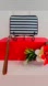 Chic and nautical-inspired, this small Stella & Dot wristlet features crisp white and navy blue stripes with a subtle red trim for a pop of color.