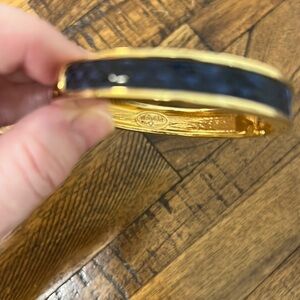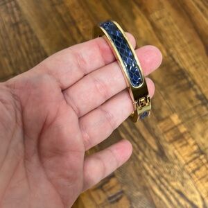 STELLA & DOT bracelet Faux blue snakeskin bangle Gold tone Hinge closure