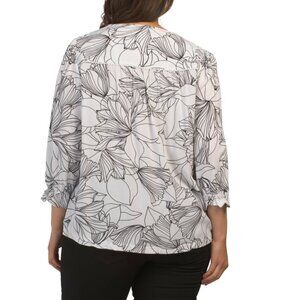 STELLA & GINGER White Floral Plus Ruffle V-neck Collar Blouse