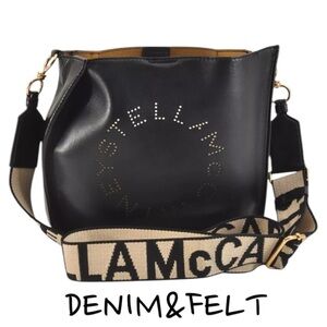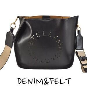 STELLA MCCARTNEY Black Perforated Vegetarian Leather Shoulder/Crossbody Bag