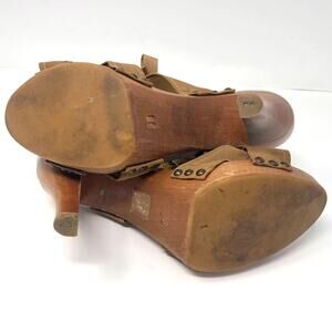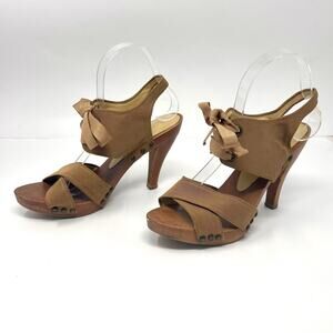 STELLA MCCARTNEY Brown Grosgrain Lace Up Sling Back Heels