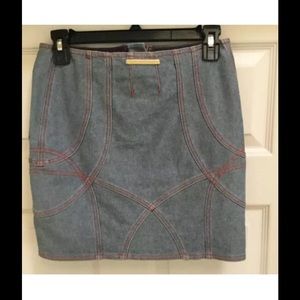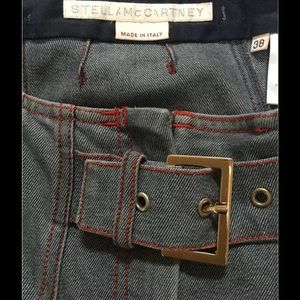 STELLA MCCARTNEY DENIM SKIRT RED STICHING DETAIL GOLD BUCKLE