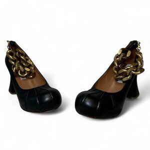 STELLA MCCARTNEY Groove Gold Chain Ankle Strap Pumps, Black, EU 38.5 NWT