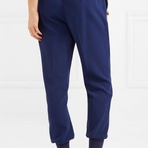 Stella McCartney's penchant for sporty codes is reflected by the elasticated waist and cuffs of these blue Julia trousers, which make them a comfortable everyday option. They're crafted from cady to a relaxed shape with side pockets, then defined by pressed creases for a considered note.