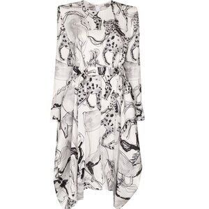 Are you ready for the ride of your life? Because this white silk Kalyn horse-print dress from Stella McCartney is, and if you've been chomping at the bit - then this is the piece to cheer you up. All in favor say, 'neigh!'. Featuring a round neck, structured shoulders, a belted waist,