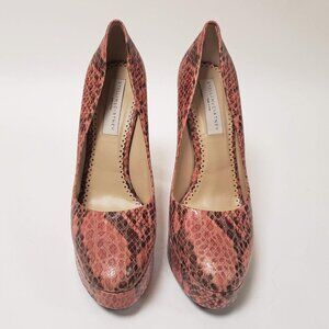 Unique Features: High Heel Platform Snakeprint Faux Leather Pumps.