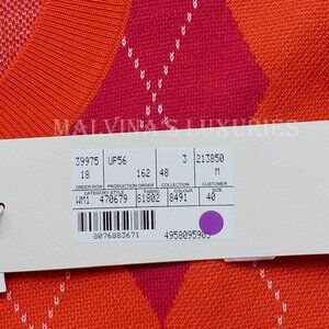 STELLA MCCARTNEY SWEATER RED HOT PINK WOOL ARGYLE PRINT TOP
