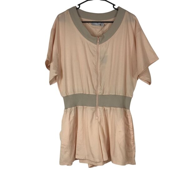 STELLA MCCARTNEY - WOMEN'S 36 - SOFT PEACH SHORT SLEEVE V NECK FULL ZIP ROMPER