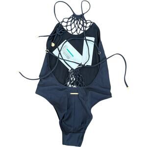 STELLA MCCARTNEY Women's Knotted Macrame Black One Piece Swimsuit Size XS