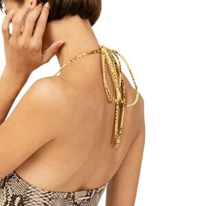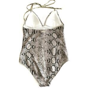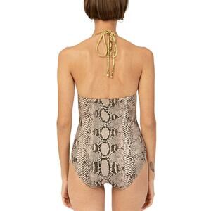STELLA MCCARTNEY snakeskin snake print one piece halter swimsuit tan black Sz S