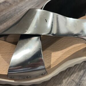Platform wooden block metallic sandals