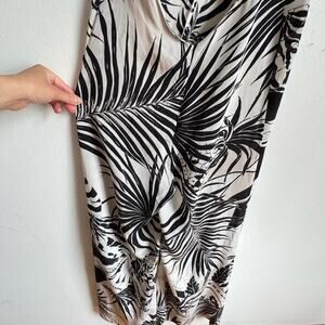 Details: STELLA McCARTNEY silk halter jumpsuit in a bold tropical palm print, featuring black, white, and soft pink tones. Made from 100% silk with a fluid drape and lightweight feel. Backless silhouette with a tie halterneck and wide-leg cut that flatters and elongates. A statement piece that blends elevated resortwear with designer eveningwear — perfect for summer weddings, cocktail events, or vacation styling. Effortless and striking, true to the Y2K-era Stella archive.