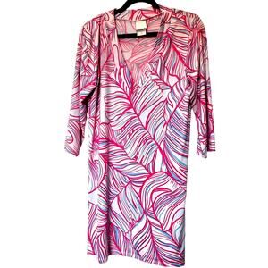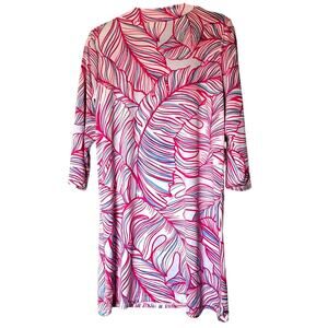 STELLA PARKER Medium Pink Blue Tropical UPF 30+ Sun Protection Swim Cover Dress