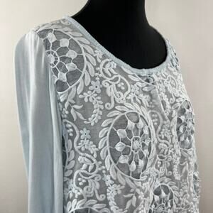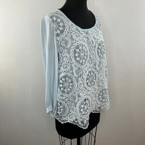 STELLA ROSA Italy Light Blue Cotton Blend Embroidered Long Sleeve Blouse Top M