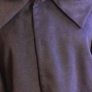 Snap front closures, side slit pockets, oversized sleeves, pleated collar