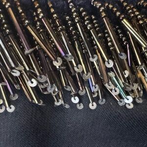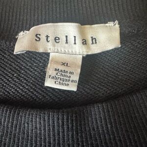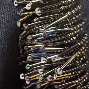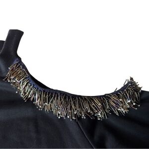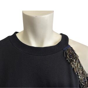STELLAH asymmetrical black beaded fringe cold shoulder crew neck top women’s XL