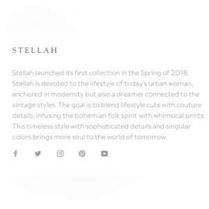 Stellah is a fashion brand that launched its first collection in 2018. It is known for timeless designs, vintage-inspired bohemian styles, and intricate details. While it’s not an Anthropologie brand, it’s often featured and sold in their stores.