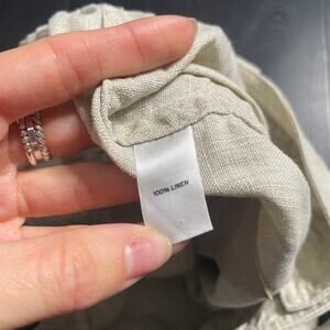 STEM 100% Linen Zip Fly Button Belted Shorts Small Zip Pockets Elastic Waist Tan