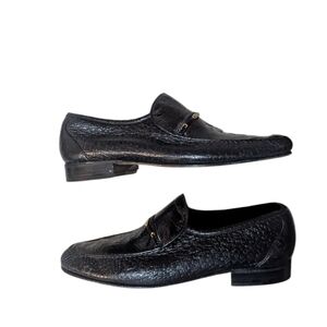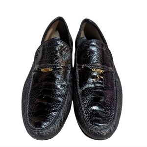 STEMAR Vintage Loafers Black Leather 10.5 Aligator Croc Made in Italy Old Money