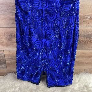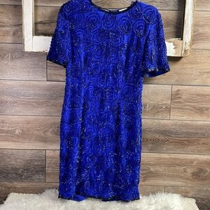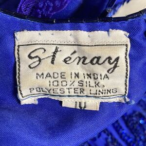 STENAY Vintage 100% Silk Sequined Royal Blue Cocktail Dress Above Knee Size 10