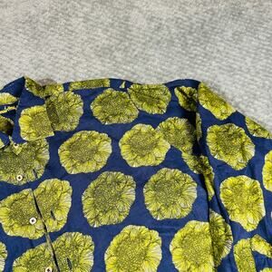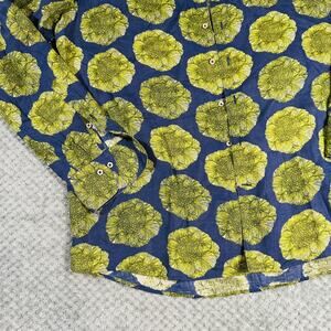 STENSTROMS Men's Lime Green Navy Floral Linen Long Sleeve Button Down Shirt XL