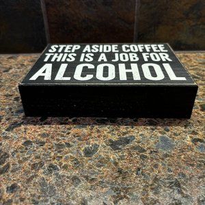 STEP ASIDE COFFEE THIS IS A JOB FOR ALCOHOL Wooden Sign Quill to Paper Sixtrees
