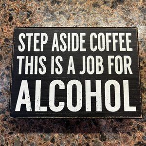 STEP ASIDE COFFEE THIS IS A JOB FOR ALCOHOL wooden plaque