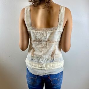 CONDITION: Very small tear on back btw lace and strap. Lace detached when model tried on. Very delicate top. Top has only been worn in photo’s.