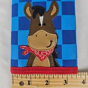 STEPHEN JOSEPH KIDS BLUE CHECKER HORSE WALLET TRIFOLD STYLE SIZE 4.5X3.5