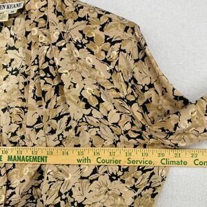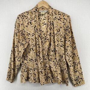 Vintage STEPHEN KEANE Blouse 10 Cardigan Silk Floral Pleated V-neck Long Sleeve VTG Beige