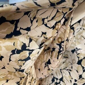 STEPHEN KEANE Blouse 10 Pleated Silk V-neck Floral Long Sleeve VTG Beige