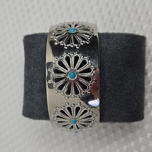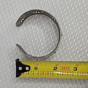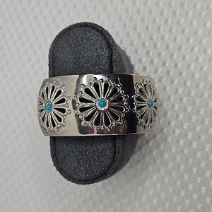 STERLING 925 TURQUISE STONE FLORAL PIERCED DESIGN CUFF BRACLET