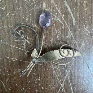 STERLING Antique Amethyst Floral Style Brooch Pin