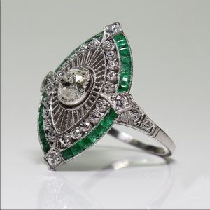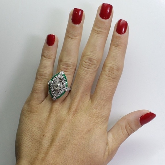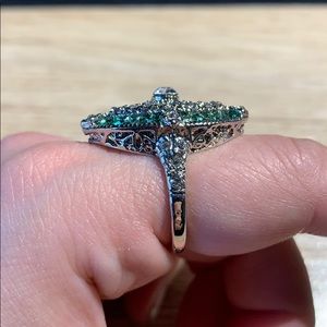 STERLING EMERALD DIAMOND RING