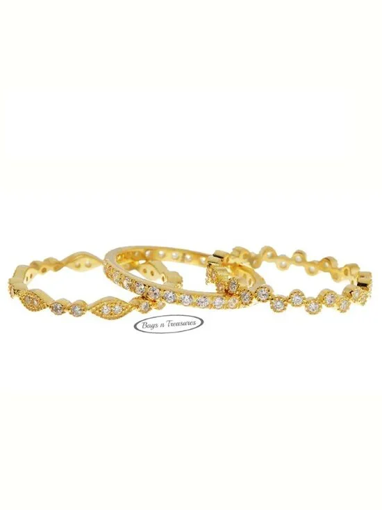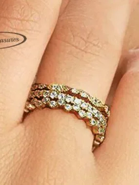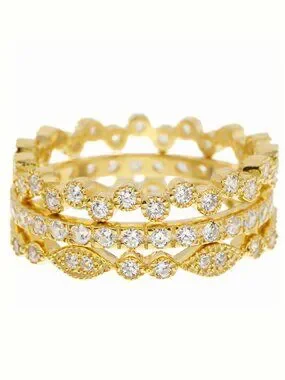 Set of 3 dainty rings are inlaid with striking CZ stones. .