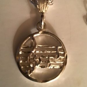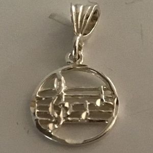 Circle pendant with treble clef and notes 5/8” diameter marked 925. 18” sterling chain marked 925. Perfect gift for the musical artist or lover of music.