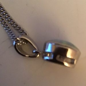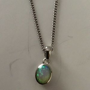 18” sterling box chain marked 925 ELKA. Oval opal is 9.52 mm, pink and milky green colors. Set in a beautiful sterling mounting. MARKED 925 on the pendant bale.