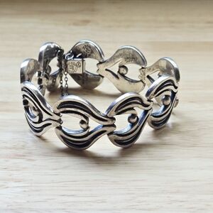 STERLING SILVER 925 SIGNED JJ TAXCO MEXICO HEAVY MODERNIST BRACELET 6.5" HEAVY